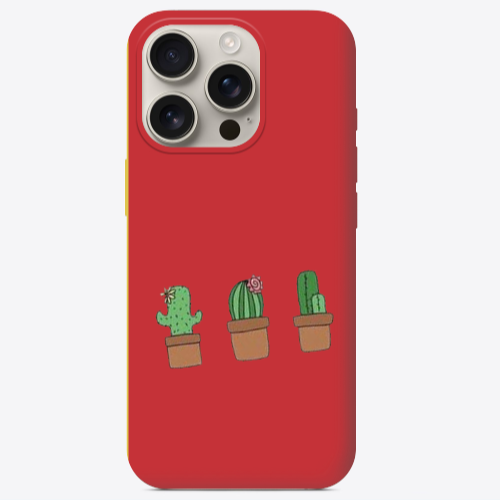 Apple iPhone 16 Pro Max 3 Lü Kaktüsa Kırmızı Renkli Silikon Telefon Kılıfı