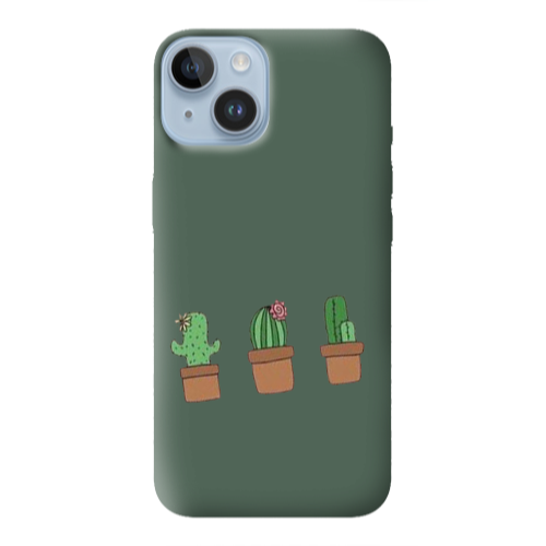 Apple iPhone 14 Plus 3 Lü Kaktüsa Koyu Yeşil Renkli Silikon Telefon Kılıfı