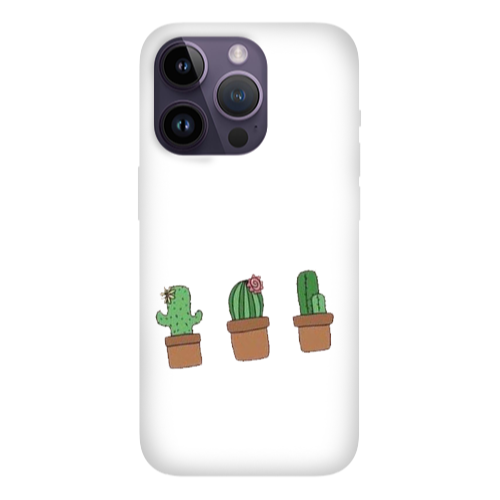 Apple iPhone 14 Pro Max 3 Lü Kaktüsa Beyaz Renkli Silikon Telefon Kılıfı