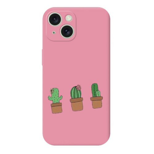 Apple iPhone 15 3 Lü Kaktüsa Pembe Renkli Silikon Telefon Kılıfı
