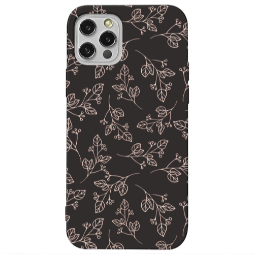Apple iPhone 12 Pro Açık Çiçek2 Siyah Renkli Silikon Telefon Kılıfı
