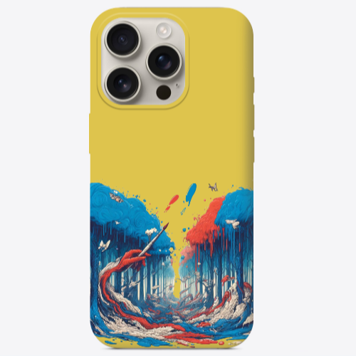 Apple iPhone 16 Pro Max Ağaç Paint Sarı Renkli Silikon Telefon Kılıfı