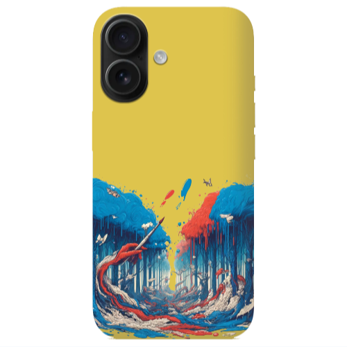 Apple iPhone 16 Ağaç Paint Sarı Renkli Silikon Telefon Kılıfı