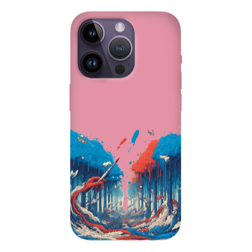 Apple iPhone 14 Pro Max Ağaç Paint Pembe Renkli Silikon Telefon Kılıfı