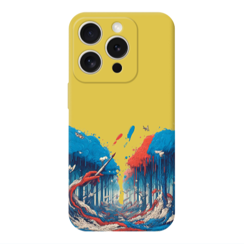 Apple iPhone 15 Pro Max Ağaç Paint Sarı Renkli Silikon Telefon Kılıfı
