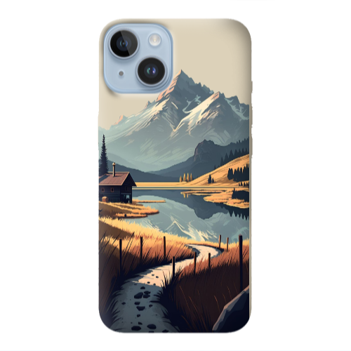 Apple iPhone 14 Plus Ahşap Ev Krem Renkli Silikon Telefon Kılıfı