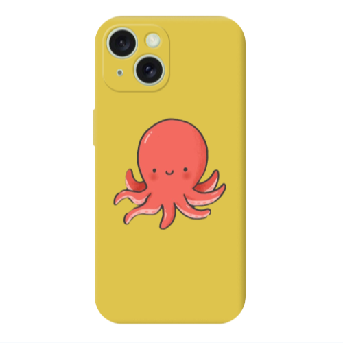 Apple iPhone 15 Plus Ahtapot Sarı Renkli Silikon Telefon Kılıfı