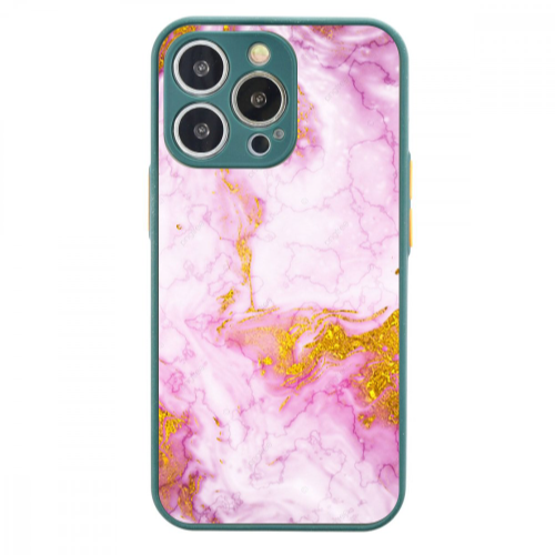 Apple iPhone 14 Pro Max Altın Pembe2 Koyu Yeşil Hux Telefon Kılıfı