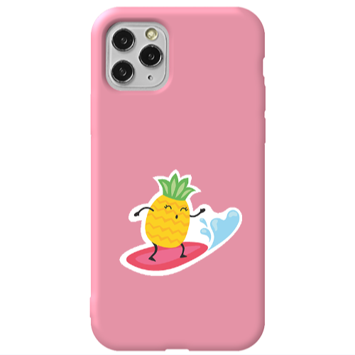 Apple iPhone 11 Pro Ananas Sörf Pembe Renkli Silikon Telefon Kılıfı