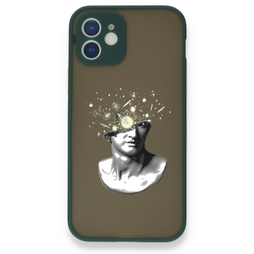 Apple iPhone 12 Mini Art 10 Koyu Yeşil Hux Telefon Kılıfı