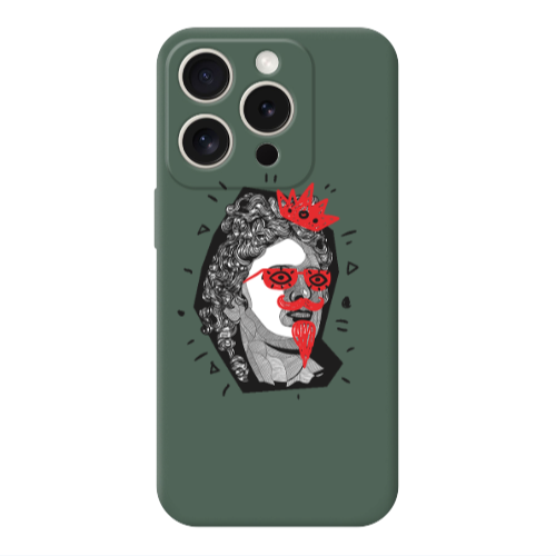 Apple iPhone 15 Pro Max Art 14 Koyu Yeşil Renkli Silikon Telefon Kılıfı
