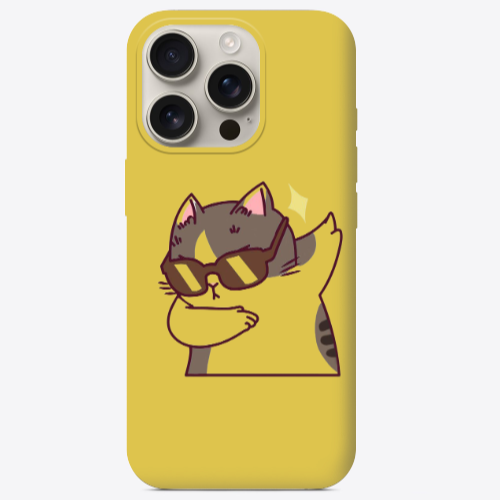 Apple iPhone 16 Pro Artist Kedi Sarı Renkli Silikon Telefon Kılıfı