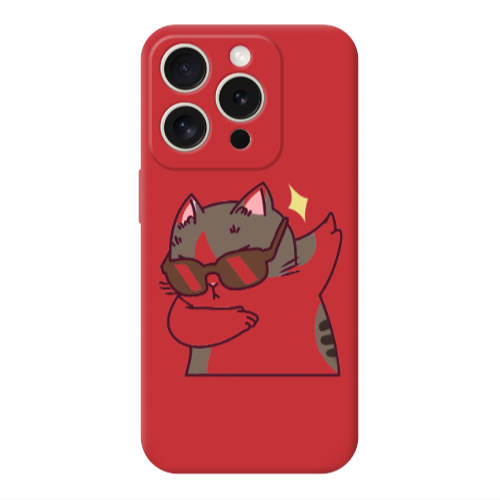 Apple iPhone 15 Pro Artist Kedi Kırmızı Renkli Silikon Telefon Kılıfı