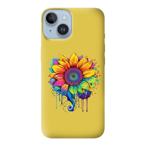 Apple iPhone 14 Plus Artistic Çiçek Sarı Renkli Silikon Telefon Kılıfı