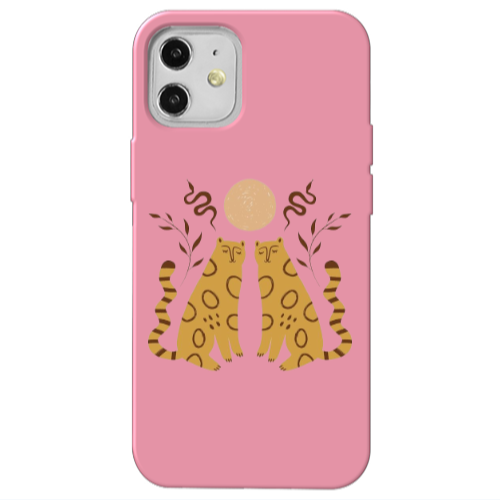Apple iPhone 12 Mini Aşık Kediler Pembe Renkli Silikon Telefon Kılıfı