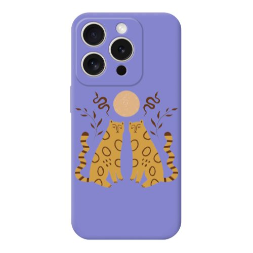 Apple iPhone 15 Pro Aşık Kediler Lila Renkli Silikon Telefon Kılıfı