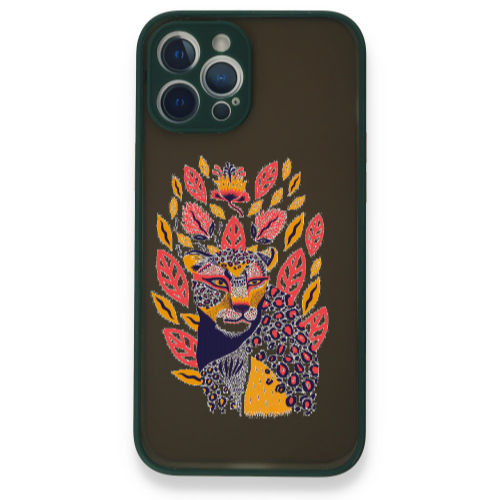 Apple iPhone 12 Pro Max Aslan Line Koyu Yeşil Hux Telefon Kılıfı