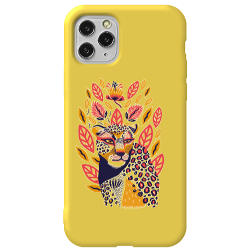 Apple iPhone 11 Pro Max Aslan Line Sarı Renkli Silikon Telefon Kılıfı