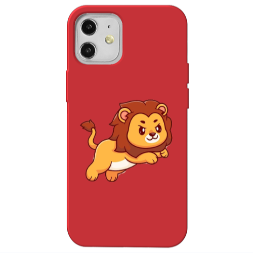Apple iPhone 12 Mini Aslan2 Kırmızı Renkli Silikon Telefon Kılıfı