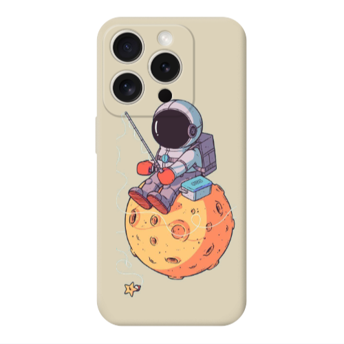 Apple iPhone 15 Pro Max Astronot Ay Krem Renkli Silikon Telefon Kılıfı