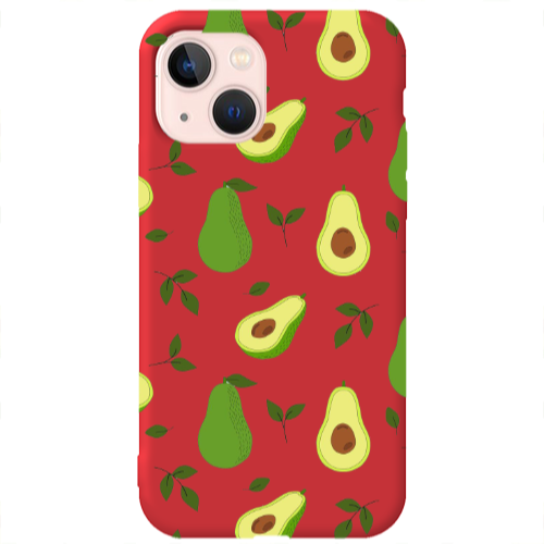 Apple iPhone 13 Mini Avokadolar Kırmızı Renkli Silikon Telefon Kılıfı