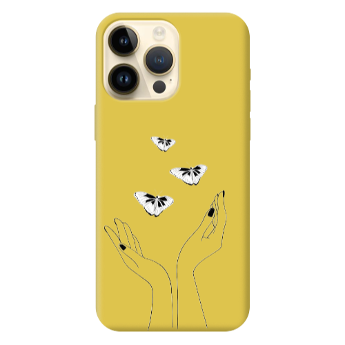 Apple iPhone 13 Pro Max Avucumdaki Kelebek Sarı Renkli Silikon Telefon Kılıfı