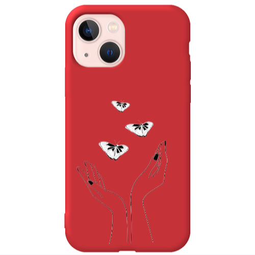 Apple iPhone 13 Mini Avucumdaki Kelebek Kırmızı Renkli Silikon Telefon Kılıfı