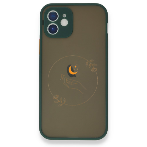 Apple iPhone 12 Mini Ay El Koyu Yeşil Hux Telefon Kılıfı