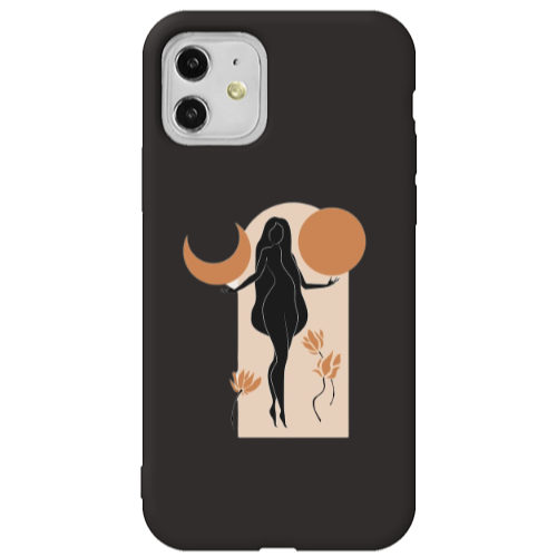 Apple iPhone 11 Ay Kadın2 Siyah Renkli Silikon Telefon Kılıfı