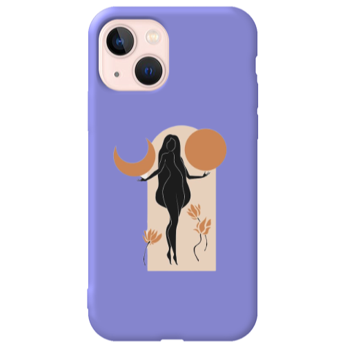 Apple iPhone 13 Ay Kadın2 Lila Renkli Silikon Telefon Kılıfı