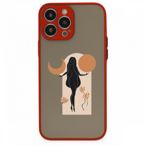 Apple iPhone 14 Pro Ay Kadın2 Kırmızı Hux Telefon Kılıfı