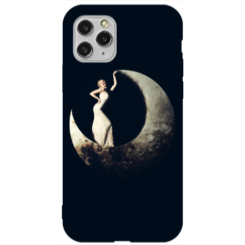 Apple iPhone 11 Pro Max Ay Kadın Koyu Yeşil Renkli Silikon Telefon Kılıfı