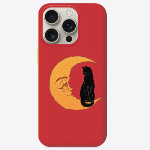 Apple iPhone 16 Pro Ay Kedi Kırmızı Renkli Silikon Telefon Kılıfı