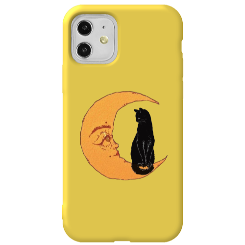 Apple iPhone 11 Ay Kedi Sarı Renkli Silikon Telefon Kılıfı