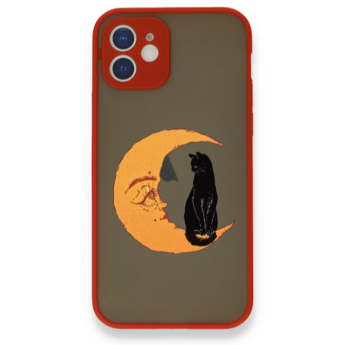 Apple iPhone 12 Ay Kedi Kırmızı Hux Telefon Kılıfı