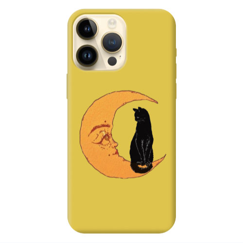 Apple iPhone 13 Pro Max Ay Kedi Sarı Renkli Silikon Telefon Kılıfı