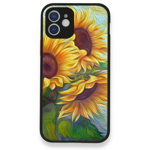 Apple iPhone 12 Ayçiçekleri Black Glossy Telefon Kılıfı