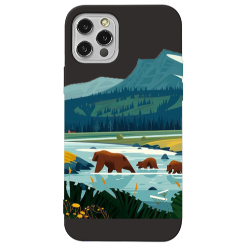 Apple iPhone 12 Pro Max Ayılar Siyah Renkli Silikon Telefon Kılıfı
