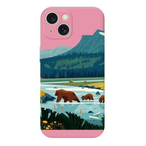 Apple iPhone 15 Plus Ayılar Pembe Renkli Silikon Telefon Kılıfı