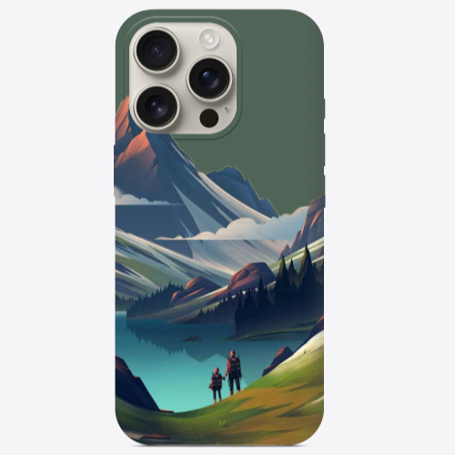 Apple iPhone 16 Pro Baba Oğul2 Koyu Yeşil Renkli Silikon Telefon Kılıfı