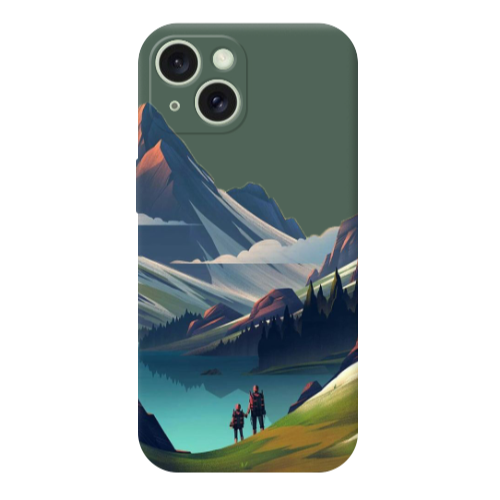 Apple iPhone 15 Plus Baba Oğul2 Koyu Yeşil Renkli Silikon Telefon Kılıfı