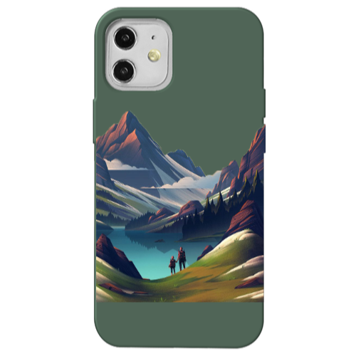 Apple iPhone 12 Baba Oğul Koyu Yeşil Renkli Silikon Telefon Kılıfı