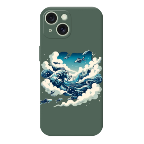 Apple iPhone 15 Plus Balık Bulut Koyu Yeşil Renkli Silikon Telefon Kılıfı