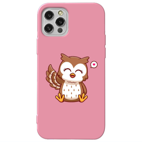 Apple iPhone 12 Pro Max Baykuş Pembe Renkli Silikon Telefon Kılıfı
