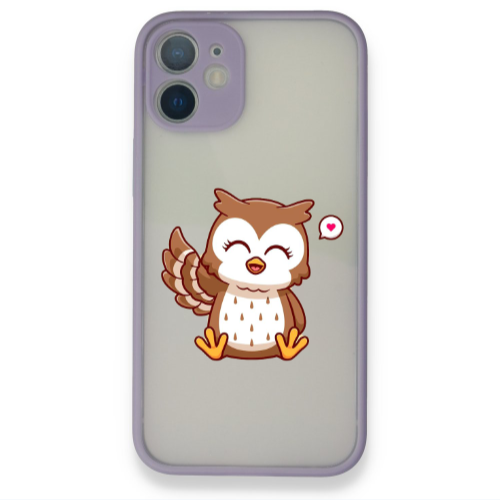 Apple iPhone 12 Mini Baykuş Lila Hux Telefon Kılıfı