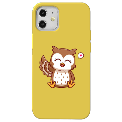 Apple iPhone 12 Mini Baykuş Sarı Renkli Silikon Telefon Kılıfı