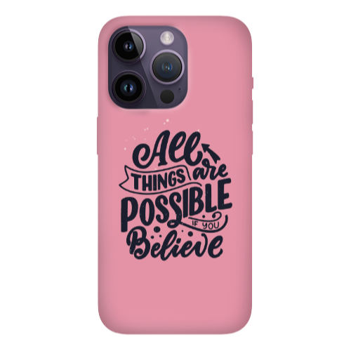 Apple iPhone 14 Pro Max Believe Pembe Renkli Silikon Telefon Kılıfı