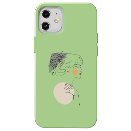 Apple iPhone 12 Benek Kadın Açık Yeşil Renkli Silikon Telefon Kılıfı