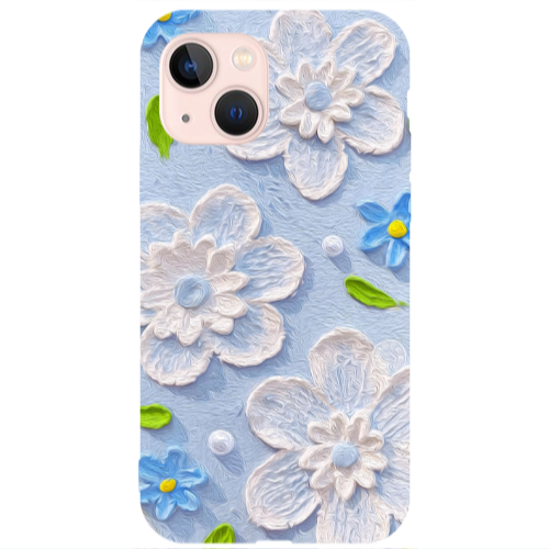 Apple iPhone 13 Mini Beyaz Çiçek Koyu Yeşil Renkli Silikon Telefon Kılıfı