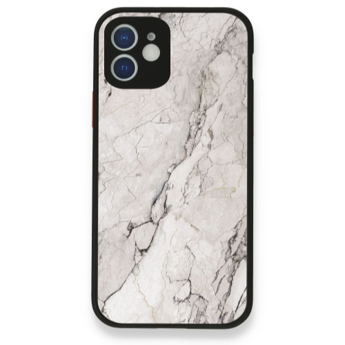Apple iPhone 12 Beyaz Çizgili2 Black Glossy Telefon Kılıfı
